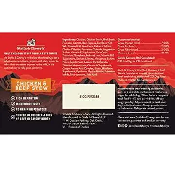 Unlike other wet dog foods, Stella & Chewy's **Wild Red Stew** sets itself apart with its commitment to high protein content from quality animal sources, making sure your dog receives the nutrients they need. Most competitors use filler ingredients that dilute the nutritional integrity, while Stella & Chewy's offers a grain-free solution that’s low-carb and free from artificial additives. This focus on quality ingredients and health makes it a trusted choice for discerning pet owners.