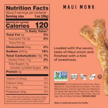 Stellar Pretzel Braids, Maui Monk Sweet Onion, 6 Large Snack Bags (5 oz each) Vegan Rods, Twists, Sticks