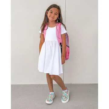 Stelle Toddler/Girls Knee-Length Short Sleeve Casual A-Line Twirly Skater Dress (A02-White (without Pocket), 5T)