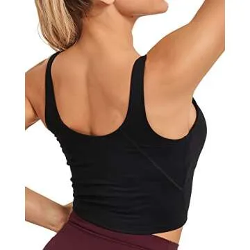 Stelle Womens Wirefree Padded Longline Sports, Yoga Bra, Fitness Workout Running Tank Tops (1-Black, Medium)
