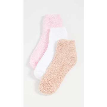STEMS Women's 3 Pack Cozy Ankle Socks, Ivory/Blush/Dusty, Off White, One Size