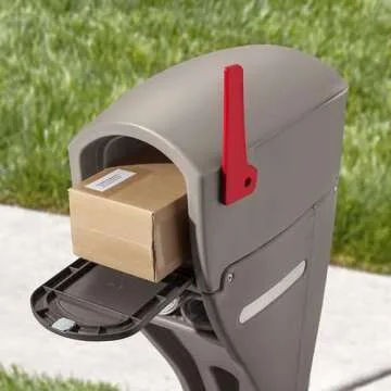 Step2 Mailmaster Streamline Mailbox & Post, Weather Resistant, Large Outdoor Mailboxes, Made of Durable Plastic, Easy to Install, Flag Included, Mocha
