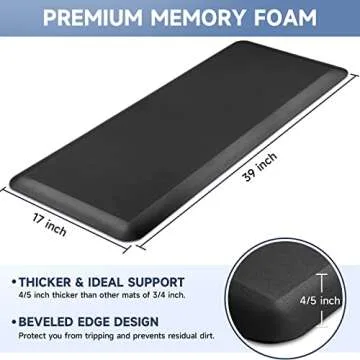 StepRite 4/5 Inch Thick Kitchen Mat Anti Fatigue Mat Kitchen Rugs Kitchen Decor Non-Slip, Stain Resistant, Waterproof Kitchen Mats Desk Mat for Kitchen, Office, Workshop, Black, 17'' x 39''
