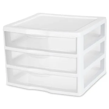 Show moreIntroducing the Sterilite 3-Pack 3 Drawer Plastic Storage, your ultimate solution for decluttering and organizing! Crafted by a reputable brand known for its commitment to quality and innovation, this practical drawer unit comes with three spacious drawers designed to accommodate everything from pantry necessities to craft supplies. Standing at an optimal height of 10 5/8 inches, each drawer fits perfectly within smaller shelving spaces, making it the ideal choice for those striving to maximize their storage efficiency.