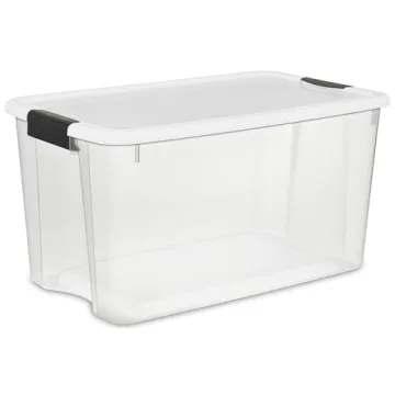 Show moreIntroducing the Sterilite 4-Pack Stackable Storage Bin with Lid, your ultimate solution for smart and efficient storage. Designed with durability and convenience in mind, each bin boasts an impressive capacity of 70 quarts and is perfect for keeping your supplies, tools, or seasonal items organized. The clear plastic design allows you to effortlessly view the contents inside, ensuring you can quickly locate what you need without any hassle. With secure heavy-duty latches and a stackable structure, these bins not only protect your belongings but also optimize your space, making them ideal for any room in your home or office.