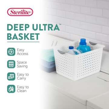 While many storage solutions exist on the market, the Sterilite Ultra Basket stands out due to its superior depth and durability. Unlike many competitors that offer shallow bins, this basket's deep design maximizes storage space without compromising aesthetic appeal. Additionally, the smooth finish not only enhances the basket's look but also ensures effortless cleaning, a feature not commonly found in similar products. With the trust and reputation of a brand that's been around since 1939, Sterilite combines experience with innovation, offering undeniable value.