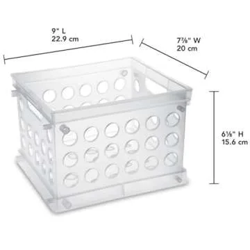 Sterilite Mini Crate, Stackable Plastic Storage Bin with Handles, Organize Home, Garage, Office, School, Dorm Room, Clear, 12-Pack