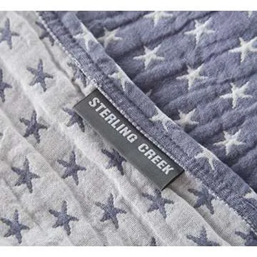 Sterling Creek Dawson Star Muslin Throw Blanket Three Layers Lightweight Breathable Cotton Gauzy Blanket for Adults, All Season (Throw, Blue)