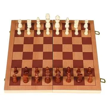 Sterling Games Chess, Checkers, Backgammon Game 3 in 1 Combo Set | 15 inch Wooden Folding Chess Board Game Set for Kids and Adults