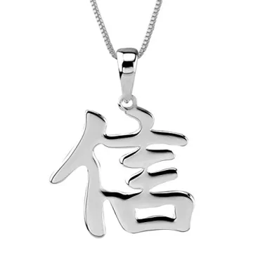 Show moreIntroducing the exquisite Sterling Silver BELIEVE FAITH Kanji Chinese Character Pendant Necklace, an elegant piece of jewelry designed to embody the powerful emotion of belief. This necklace features a beautifully balanced kanji symbol that translates to 'Believe', crafted from high-quality 925 sterling silver. Measuring at a sleek 0.81 inches tall and wide, this pendant shines brightly, thanks to its high-polished finish which not only enhances its aesthetic appeal but also ensures easy maintenance. Perfectly complemented by an 18-inch nickel-free sterling silver box chain, this piece not only makes a bold statement but also reflects the refined taste of its wearer.