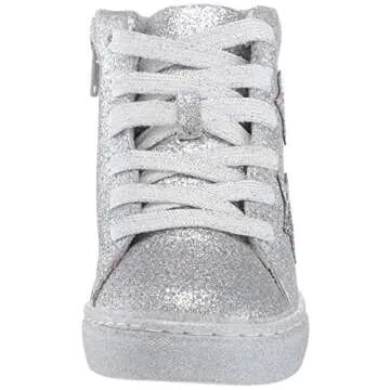 The Steve Madden Girl's JJAUSTINN Sneaker stands out among competitors like Nike and Adidas due to its unique combination of style and ease of wear. While many brands offer high-top sneakers, the functional inside zipper sets this model apart, making it easier for kids to put on and take off without assistance. The eye-catching silver color is also a significant differentiator, appealing to children with a taste for the latest trends.