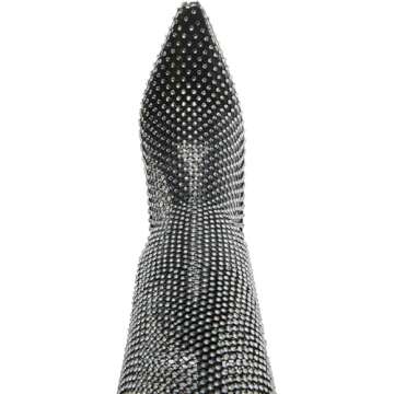 Make your feet feel like heaven with your effortless style wearing the Steve Madden Sapphire Boot. Micro suede, mesh textile, lucite and stones upper. Unlined and synthetic insole. Pointed toe and high heel over-the-knee boot. Slip-on style.