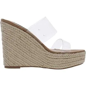 Steve Madden Sunrise Wedge Sandals for Women - Jute Wrapped Wedge Heel, Padded Footbed, and Open-Toe Clear 8.5 M