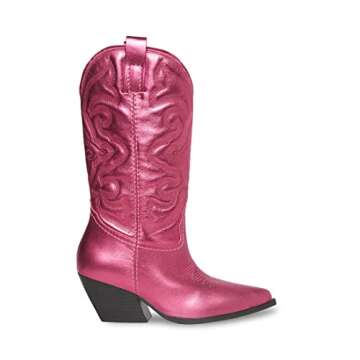 When compared to similar designs in the market, the **Steve Madden West Pink Metallic Boots** stand out due to their distinctive metallic finish and quality construction. While many boots provide aesthetic appeal, few combine style, comfort, and durability in this price range. Unlike competitors, these boots feature a block heel designed for stability and comfort, making them your go-to option for both fashion and wearability. Many alternatives may lack the attention to detail or fail to provide the same comfort level during prolonged wear.