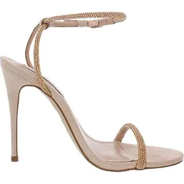 Show moreStep into style and sophistication with the Steve Madden Women's Breslin Heeled Sandal. This stunning pair features a delicate slender toe strap adorned with exquisite rhinestone detailing, creating a dazzling look that captures attention with every step. Its breathtaking blush tone effortlessly complements any outfit, making it perfect for both day and evening wear. The secure ankle strap with buckle closure provides not only stability but also an elegance that amplifies your fashion statement. With a chic 4" stiletto heel and an open almond toe design, these sandals elevate your ensemble while ensuring comfort and versatility.
