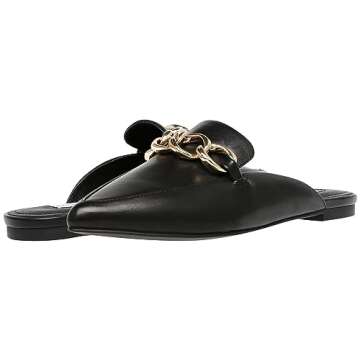 Steve Madden Women's Forte Mule Loafer - Stylish Black Leather with Chain Detail