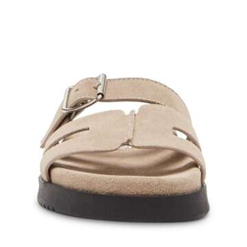 Show moreThe Steve Madden Women's Mayhem Slide Sandal in elegant Taupe Suede is the ideal blend of style and comfort that every woman deserves. Designed to elevate your casual look while providing the utmost comfort, these sandals are perfect for warm-weather outings. The standout feature is the adjustable buckle closure on the upper strap, allowing for a customizable fit that hugs your foot securely. With a cushioned footbed, every step is a plush experience, making it easy to wear these slides all day long without sacrificing comfort for style.