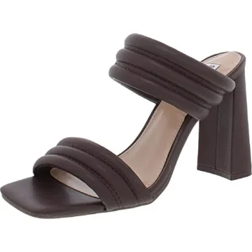 Show moreStep into elegance with the Steve Madden Women's Tahani Heeled Sandal in a stunning brown hue that perfectly complements any outfit. These chic sandals feature a unique dual quilted toe strap design, ensuring both comfort and style. The open square toe allows for breathability and a modern aesthetic, making them ideal for warm days. With a gracefully designed flared block heel, you can enjoy an elevated look without sacrificing comfort. The heeled slip-on style offers convenience, making it easy to slide into these beautiful sandals for any occasion. Crafted from high-quality faux leather, these sandals not only provide a luxurious feel but also support ethical fashion choices.