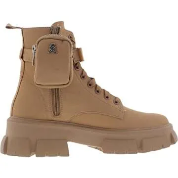 Show moreElevate your style this season with the Steve Madden Women's Thora-P Ankle Boot. Designed with a perfect blend of chic sophistication and everyday comfort, these boots are your ultimate go-to for any occasion. Featuring a striking tan color that effortlessly matches with a wide range of outfits, the Thora-P is more than just eye-catching; it is functional too. With its distinctive lace-up design and trendy side pocket detail, these ankle boots offer a contemporary twist on a classic style. The chunky sole provides both support and stability, while the low heel ensures that you can wear them all day long without sacrificing comfort.