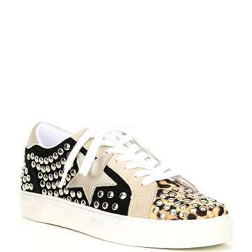 Show moreThe Steve Madden Women's Turner-s Sneaker is a chic and fashionable footwear option designed for women who love to stand out. Crafted with a stylish lace-up closure, these sneakers offer both comfort and a secure fit, making them perfect for all-day wear. The eye-catching star detail adds a playful touch, while the embellishments with studs create a bold, trendy aesthetic that sets these sneakers apart from ordinary footwear. Whether you're heading to the gym or going out for brunch, these sneakers will elevate your outfit effortlessly.