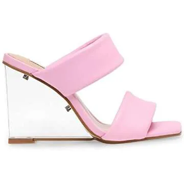 Steve Madden Contrast Wedge Sandal Colorful Upper Square Toe Thick Double Strap Detail
