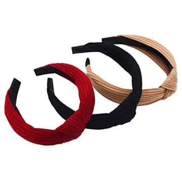 Show moreIntroducing the STHUAHE Pack of 3 Women Wide Stripes Cloth Cross Knot Hair Hoops—the ultimate addition to your hair accessory collection. Made from high-quality stripe cloth, these hairbands are designed to blend style with comfort. Each headband features a soft and cozy flannelette lining, ensuring a gentle fit that keeps your hair securely in place while also pampering your scalp. Available in three beautiful color combinations—Red, Black, Khaki—these headbands add a touch of charm and practical elegance to any outfit, making them ideal for both casual and formal occasions.