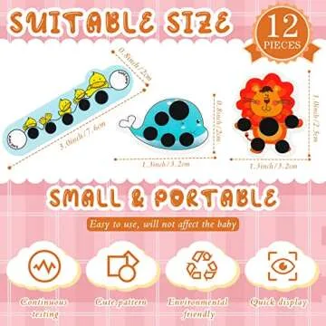 With clear and simple usage instructions, these are ideal for parents who want peace of mind regarding their child's health. While they are not a substitute for a medical thermometer, these fun stickers are perfect for quick checks or when you don’t have a thermometer on hand. The black dot indicates the monitor point, providing easy-to-read temperature results that guide you to ensure your child's well-being.