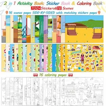 Sticker Coloring Books for Kids Ages 4-8: 700+ Stickers & 16 Scenes - Creative Travel Activities