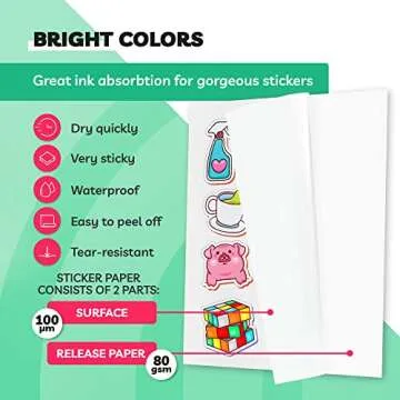Show more Unlock your creative potential with our exceptional Sticker Paper for Inkjet Printers! This glossy sticker paper is the perfect canvas for crafters, artists, and hobbyists alike. With 20 sheets (8.5x11) of high-quality printable vinyl, you can design personalized stickers, labels, and decals that capture every detail and color with stunning clarity. Whether you're looking to create product labels or unique scrapbook decorations, you can achieve professional-grade results right from the comfort of your home. Its design has been *engineered for amazing performance* on various compatible printers, including inkjet, laser, and Cricut models.