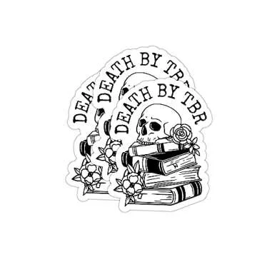 STICKYAME (3pcs) Death by TBR Sticker, Book Lover Sticker, Book Nerd Sticker, Bookish Sticker, Skull Sticker, Funny Skull Stickers, Kindle Stickers, Reading Stickers, Bookish Stickers, Bookish Water