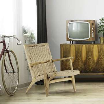 Show moreIntroducing the Stilnovo The Sungar Arm Chair, a stunning synthesis of craftsmanship and modern design that redefines comfort and style in one effortlessly chic piece. Made to enhance any living space, this natural finish armchair features a beautifully designed ash wood frame and a uniquely woven paper cord seat and back. With its exquisite lines reminiscent of classic Danish aesthetics, this chair is perfect for those who appreciate minimalist elegance and functional design. No assembly is required, making it a hassle-free addition to your home.