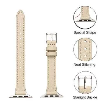 STIROLL Thin Leather Band Compatible with Apple Watch 38mm 40mm 41mm 42mm 44mm 45mm 49mm, Top Grain Leather Watch for iWatch Ultra SE Series 8/7/6/5/4/3/2/1, 38mm/40mm/41mm, Leather, No Gemstones