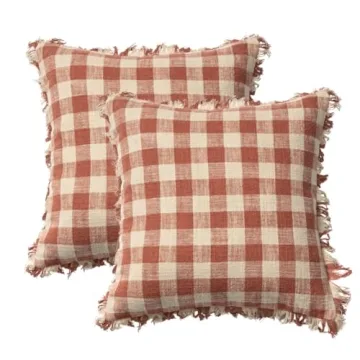Show more Introducing the STITCH N STRING Set of 2 Farmhouse Cotton Linen Boho Gingham Fringe Checkered Plaid Throw Pillow Covers – the ultimate addition to elevate your décor! Measuring 18x18 inches, these pillow covers are designed to blend seamlessly into both indoor and outdoor spaces, offering a unique bohemian flair that brightens your living area. Crafted from a luxurious blend of 50% cotton and 50% linen, these pillow covers provide a soft, breathable touch, ensuring they are not only stylish but also incredibly cozy. Experience pure pillow bliss with a perfect fit that hugs your favorite cushions without any uncomfortable squeezing.