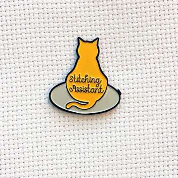 Stitching Assistant Orange Cat on Embroidery Hoop Enamel Needle Minder
