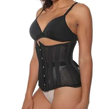 STMAHER Womens Mesh Lace Up Corsets 26 Steel Boned Waist Training Heavy Duty Underbust Body Shaper (Black4 S)