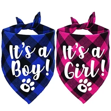 Show moreIntroducing the **STMK It's A Boy It's A Girl Plaid Dog Bandana** - the perfect way to incorporate your furry friend into your joyous journey of announcing your pregnancy! This delightful set includes two stylish plaid bandanas, one in a charming blue and black pattern to proclaim "It's A Boy," and another in a lovely pink and black design for "It's A Girl." Crafted from 100% premium cotton, these bandanas promise to be soft, breathable, and comfortable for your pup, making them an ideal accessory for any special occasion.