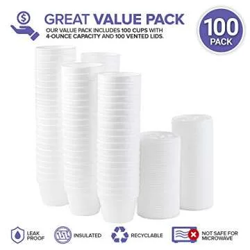 Stock Your Home 4 Ounce Foam Bowls with Lids (100 Count) - Foam Bowls with Lids - Insulated to Go Foam Cups - to Go Containers for Soup, Oatmeal, Ice Cream, Delis, Cafes, Restaurants