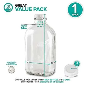 Show moreIf you’re searching for a sustainable, elegant, and practical solution for your beverage storage needs, look no further than the Stock Your Home Half Gallon Glass Milk Bottle. Made from premium lead-free glass, these beautifully crafted jugs are not only a stylish addition to your kitchen but also a responsible alternative to plastic containers. With a generous capacity of 64 ounces, these bottles efficiently store your favorite liquids such as milk, juice, plant-based milks, or any other DIY concoctions you wish to keep fresh. The crystal-clear design allows you to see what's inside, while the sturdy construction ensures durability and longevity.