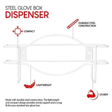 Show moreDiscover the perfect way to keep your gloves organized and accessible with the Stock Your Home White Metal Glove Dispenser. This expertly designed wall-mounted holder is constructed from durable powder-coated steel, providing a lightweight yet rugged solution suitable for any environment, whether it be a kitchen, lab, or medical facility. Its minimalist design seamlessly integrates into your decor, while its functionality ensures that you can easily pull out gloves without any fuss, significantly reducing the chance of contamination.