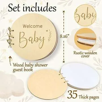 Stofinity Wooden Baby Shower Guest Book Alternatives for Girl - Welcome Baby Shower Sign in Guest Book for Boy, Blank Baby Shower Book Guest, Baby Shower Games Guestbook Keepsake Memory Book