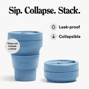 STOJO Collapsible Travel Cup - Reusable To-Go Pocket Size Silicone Bottle for Hot and Cold Drinks - Perfect for Camping - Microwave & Dishwasher Safe (Steel, 12 Ounce (Pack of 1) - No Straw)