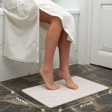 Stone Bath Mats for Bathroom - White Bathroom Accessories - Luxury Dish Drying Mat for Kitchen & Bathroom Floors, Moisture Absorbing Diatomaceous Earth Bath & Shower Mat
