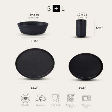 Stone by Mercer Project KATACHI Stoneware 16-Piece Dinnerware Set, Charcoal