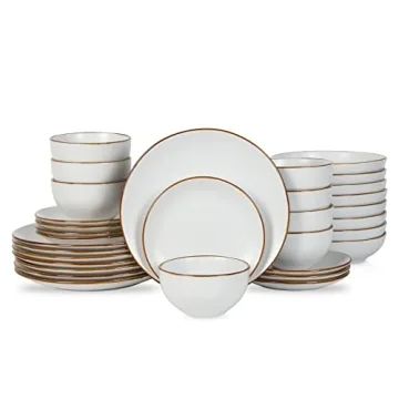 Stone Lain Brasa Modern Stoneware 32 Piece Dinnerware Sets, Plates and Bowls Sets, Dish Set for 8, White