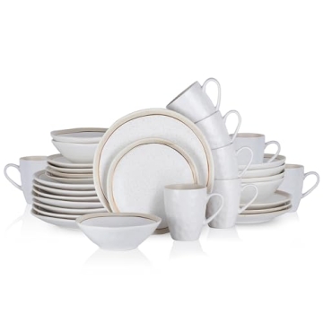 This comprehensive set includes a total of 32 pieces designed to serve up to 8 guests, ensuring you have everything you need for a complete dining experience. Each piece is thoughtfully sized to provide the optimal dining experience—from the 8.27-inch salad plates to the generous 10.83-inch dinner plates, 18.6 fl. oz. bowls, and 14.5 fl. oz. mugs. Clara's modern yet timeless design means you can effortlessly impress your guests during formal dinners or casual brunches alike.