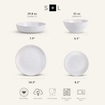 Show moreExperience the perfect blend of style and functionality with the Stone Lain Lauren Modern Stoneware 16-piece Round Dinnerware Set. Designed for a service of four, this exquisite dinnerware set includes four dinner plates, four salad plates, four soup bowls, and four pasta bowls. Crafted from high-quality stoneware, each piece features a charming speckled design and elegant ridged rims, making your dining experience not just a meal, but an aesthetic delight.