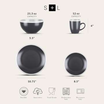 Stone Lain Serenity 32-Piece Stoneware Dinnerware, 2-Tone, Speckles, Dark Gray and Cream,