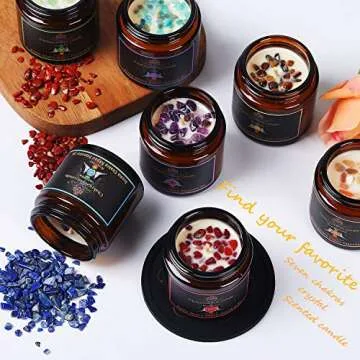 STONE OF LIFE Crystal Candles Set of Seven with Essential Oils and Crystals
