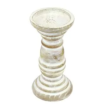 Show more Welcome to the serene elegance of coastal decor with the Stonebriar Decorative Worn White Wooden Pillar Candle Holder. Measuring 4.2" x 4.2" x 7.9", this exquisite piece is designed to accommodate your favorite 3" diameter pillar candle, creating a warm and inviting ambiance. The unique seaside charm of this candle holder is highlighted by its decorative white spun wood finish, which has been lightly distressed to evoke a vintage seaside feel, perfect for adding a touch of coastal beauty to your home.