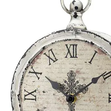 Show moreIntroducing the exquisite vintage-inspired Stonebriar Decorative Antique Clock, measuring a perfect 13 inches in height and 8 inches in width. This unique piece is designed to enhance any space, making it ideal for placement on a mantel, shelf, or tabletop. The clock features an elegant vintage clock face adorned with a delicate cross detail at its center, exuding a sophisticated charm that seamlessly combines functionality with artful design. The distressed white painted finish adds a touch of rustic elegance, reminiscent of timeworn European decor, which is loved by many as showcased in customer reviews. Its compact dimensions allow it to perfectly fit in any room—be it your kitchen, living room, bathroom, or bedroom. Powered by a single AA battery (not included), this easy-to-use clock ensures you won’t have to worry about cords cluttering your space.